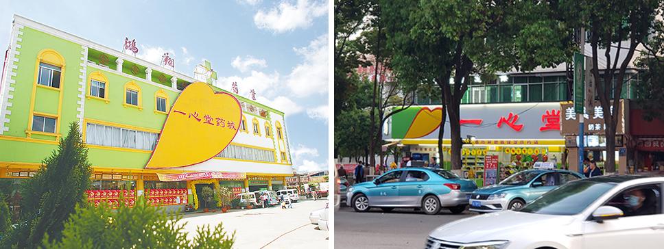 一心堂老總部與遍布云南大街小巷的一心堂門店