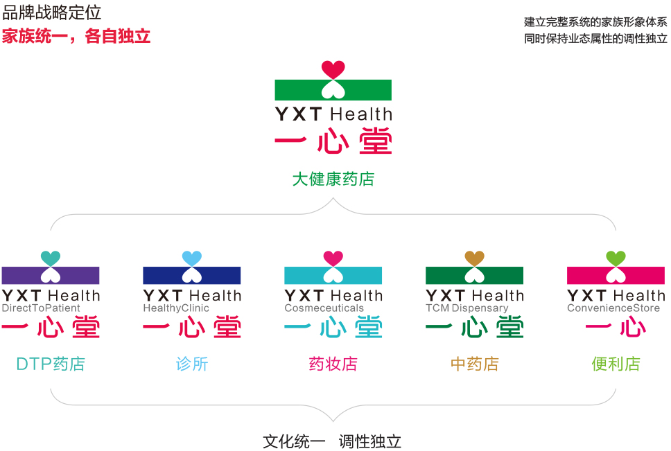 于是,我們為一心堂確立了“家族統一,業態獨立”的品牌戰略定位。