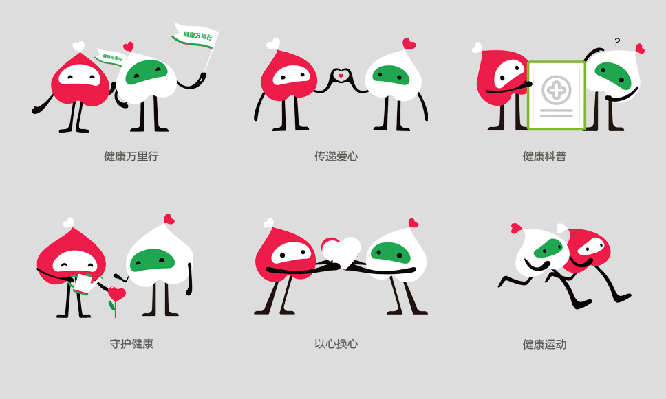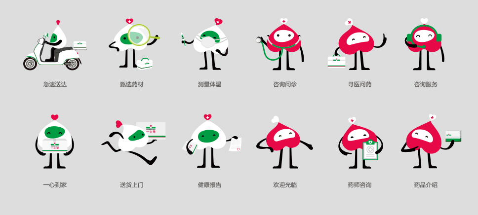 比如在診所里用藥店的顏色,那是不搭調的,所以要去配合品牌進行調整。他們的形象不變,名字不變,他們永遠是“一一”和“心心”,只是身上的顏色(衣服)發生了變化。