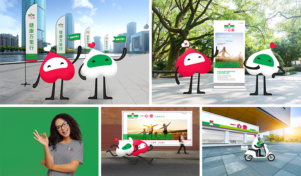 “一一”和“心心”可以作為一心堂一些活動的主體或活動標志在文化衫、廣告、宣傳片等應用,做成玩偶、雕塑、或者玩偶服,去吸引用戶,邀請他們打卡拍照,傳播品牌與文化理念。消費者也從被動的接受者,變成共鳴情緒下的參與者,甚至是分享者,擴大品牌傳播面,降低了品牌傳播成本。