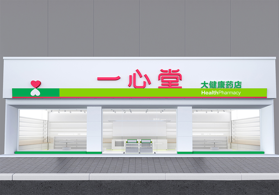 所以各業態的終端形象識別設計也遵循著集團業態品牌戰略統一性原則,建立藥店門頭與集團其他業態門頭之間的品牌戰略同盟關系。