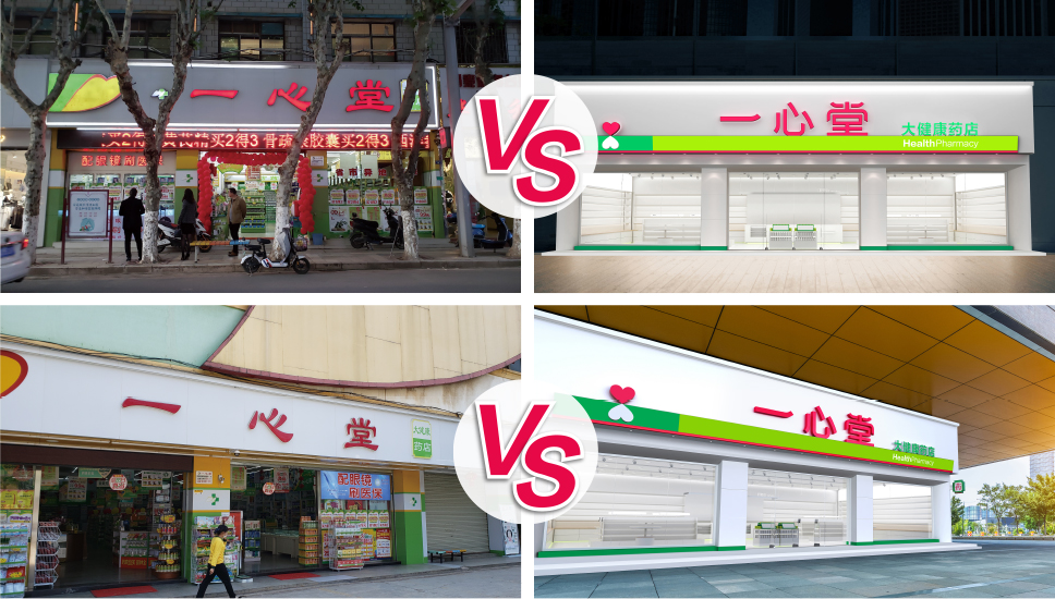 ▲  一心堂藥店新舊門頭效果對比