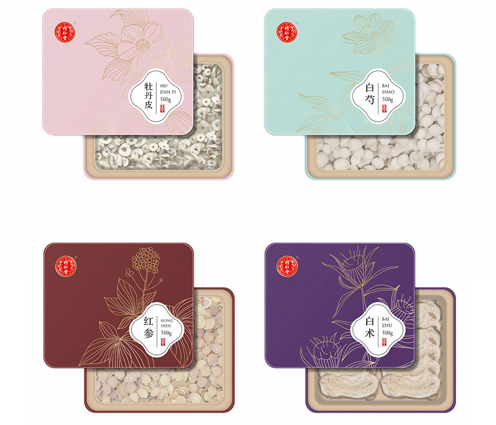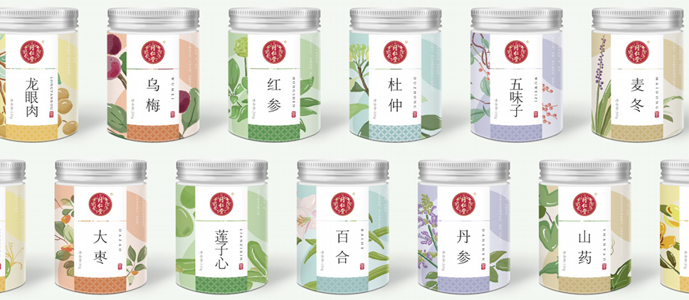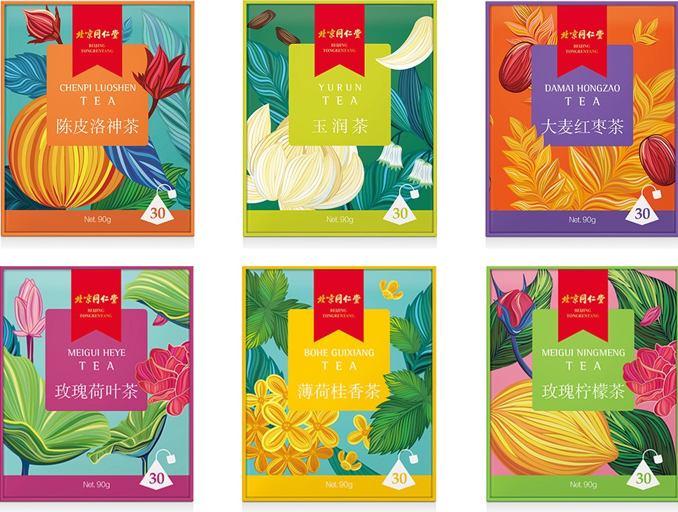 在戰略色彩定位上,運用了跨界融合與對撞的手法,以及經典中式風格的色系傳遞出同仁堂藥材的高品質以及同仁堂傳承文化的質量觀、整體以飽和度適中的色調傳遞出輕松、健康、自然。