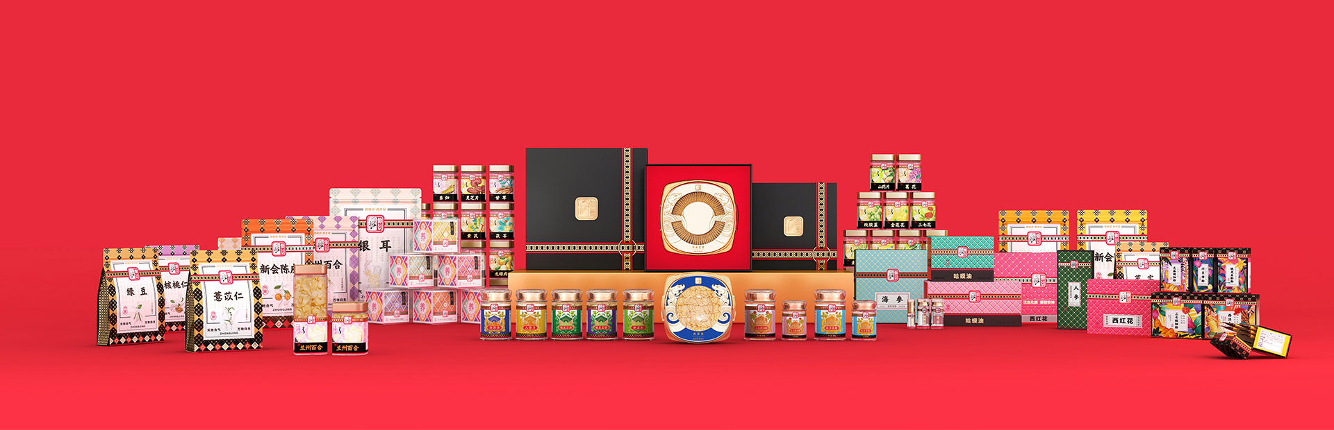 十字串環作為品牌核心戰略元素,是天人合一的精神可視化體現,以十字穿環做為母紋貫穿整個家族,一來與我們的戰略文化相契合,二來更能體現出仲景品牌家族的統一性。
